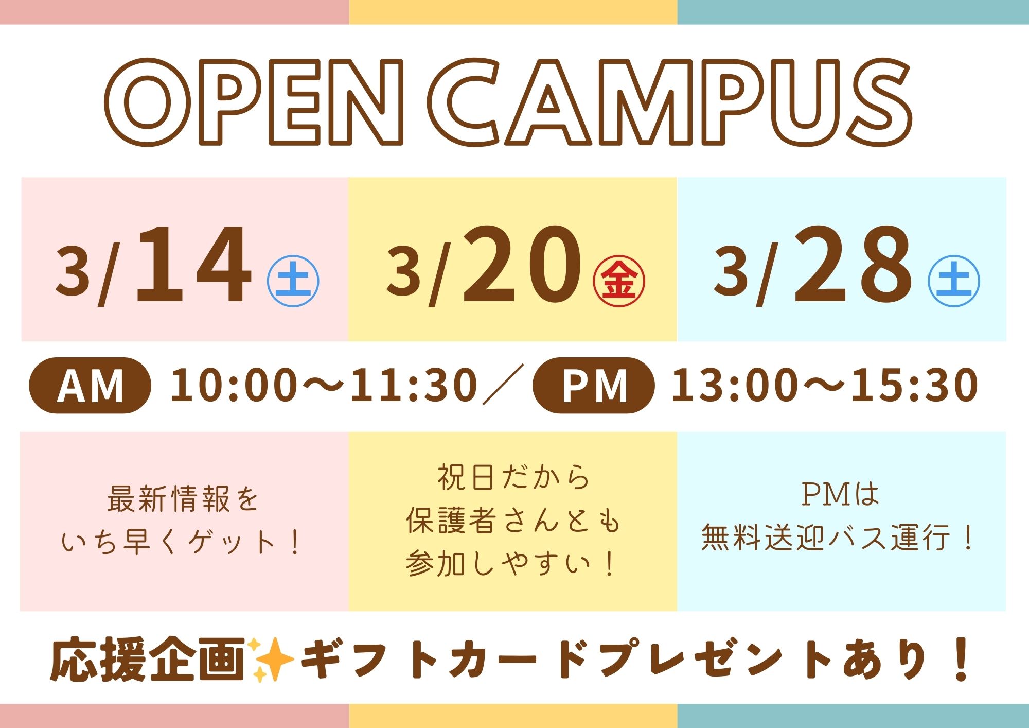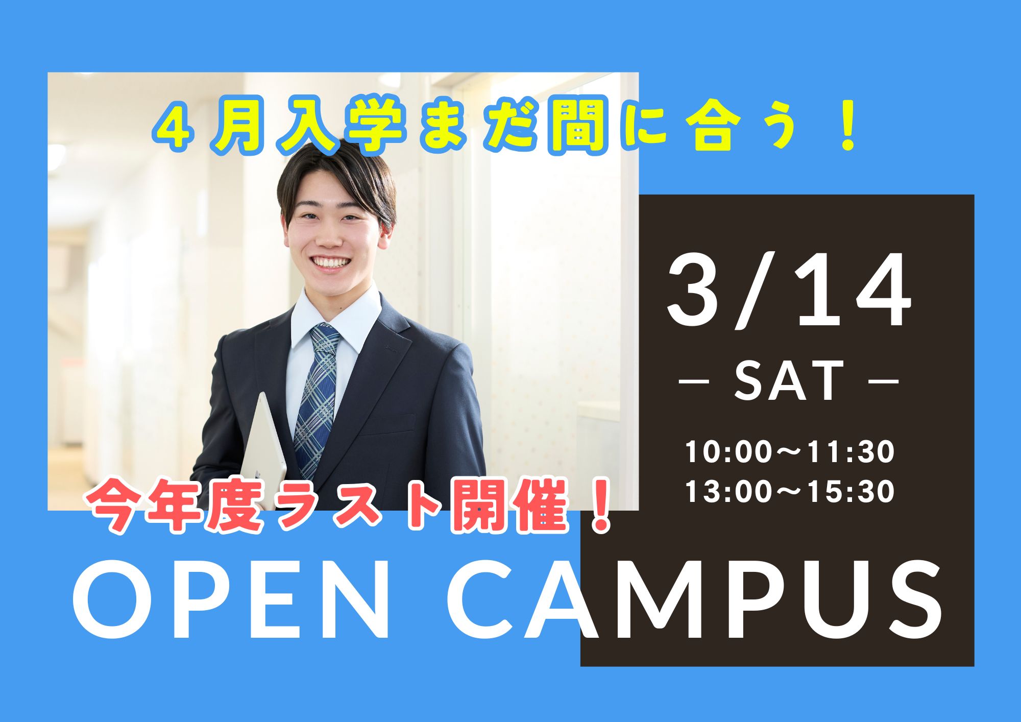 《 4月入学まだ間に合う!今年度ラスト💡 》◤3/14(土)◢ オープンキャンパス開催✨