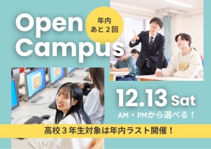 高校3年生対象は年内ラスト!【 12/13(土) 】オープンキャンパス🔔